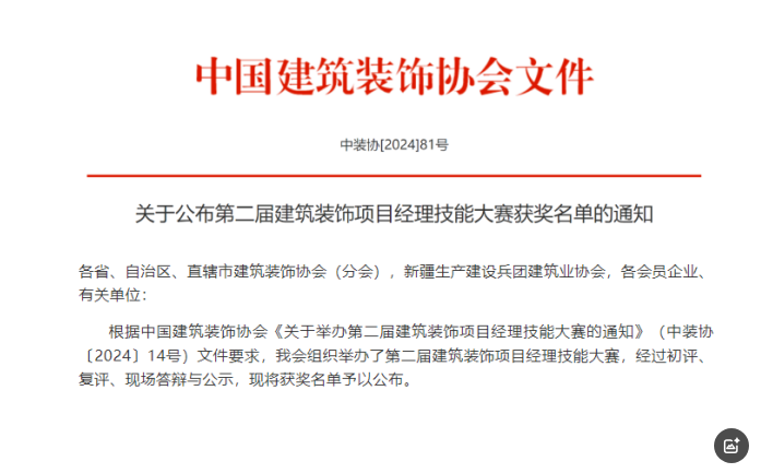 推進建筑裝飾行業工業化、數字化、綠色化、裝配化轉型升級,中國建筑裝飾協會舉辦了(第二屆)建筑裝飾項目經理技能大賽。